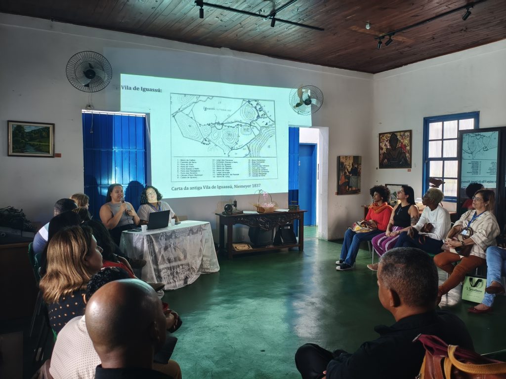 Roda de Conversa “Intercâmbio entre Nova Iguaçu e Duque de Caxias: Portos do Iguaçu e do Pilar”, apresentada pelas estudante de arqueologia Marcela Milão, do MVSB, e Luiza Mello (Rafael Nascimento/MVSB)