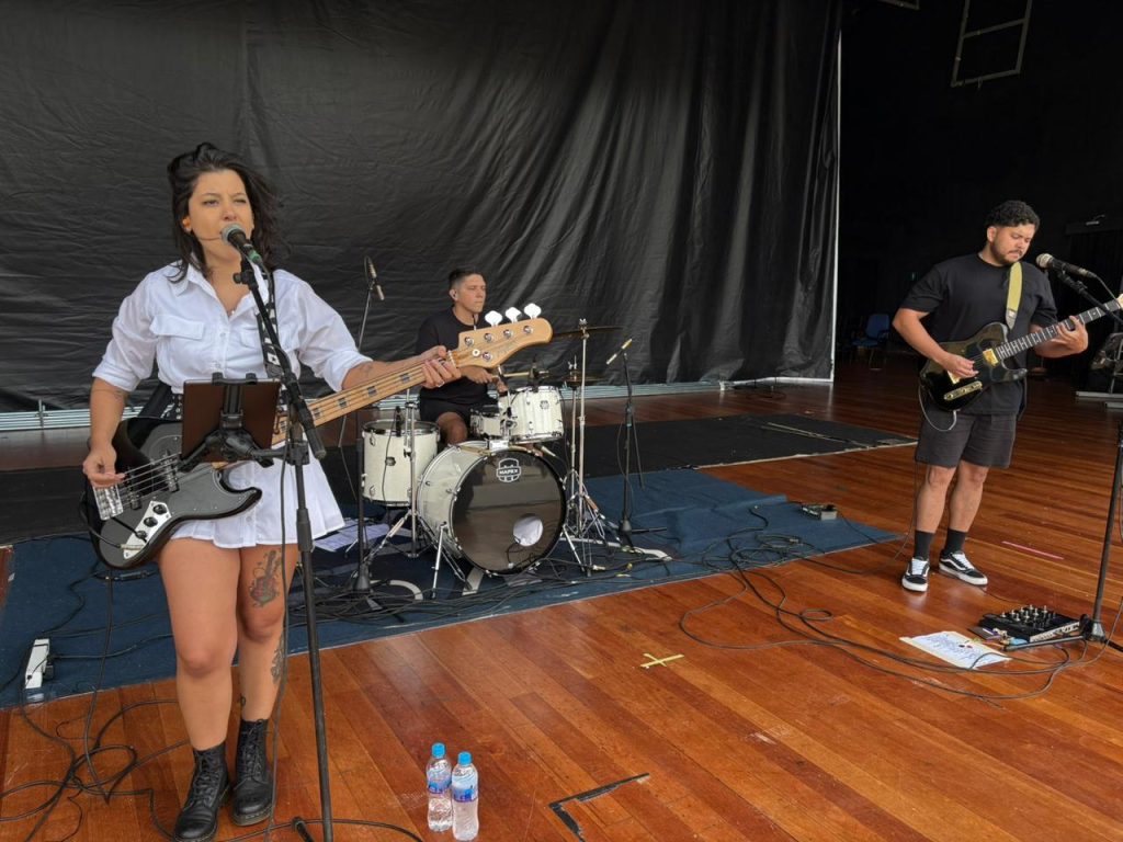Uma delas é a Gladstone, que estreou no palco aberto do Teatro e foi responsável por abrir o Festival. A banda está na estrada desde 2023 e carrega influências do rock nacional e internacional, como explica a vocalista e baixista da banda, Gabriela Medeiros: “No nacional, a gente toca muito a Pitty. Eu sou apaixonada pela cantora. Eu acho que ela é uma artista imensa da Bahia. A gente precisa dar mais visibilidade aos nossos artistas nacionais, mas também aos artistas internacionais, como Pearl Jam, Nirvana, Bon Jovi, que fazem parte do nosso repertório, inclusive”, declarou.