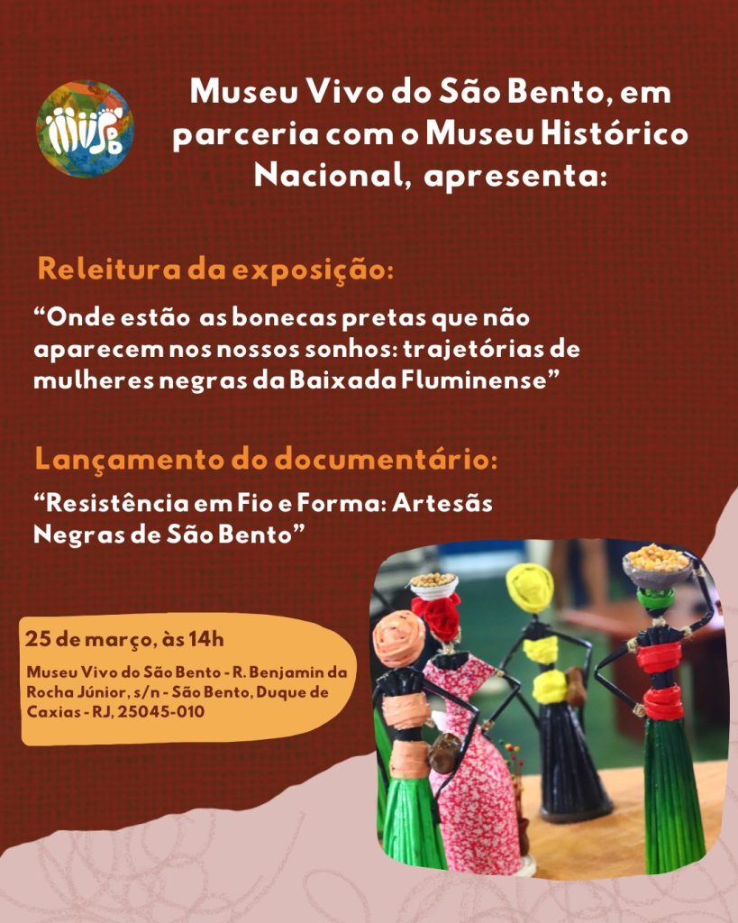 Na próxima quarta-feira (25), o Museu Vivo do São Bento (MVSB) vai realizar a abertura da releitura da exposição “Onde estão as bonecas pretas que não aparecem nos nossos sonhos: trajetórias de mulheres negras da Baixada Fluminense”.