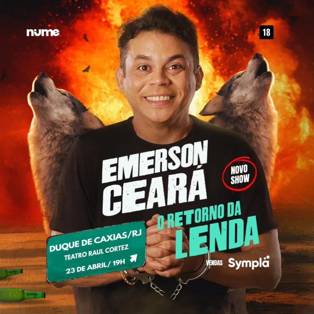 Na quinta-feira (23), feriado de São Jorge, o humorista Emerson Ceará agita o palco caxiense a partir das 19h, com seu novo show “O Retorno da Lenda”. Ele promete um espetáculo que celebra sua trajetória, seu estilo inconfundível e as histórias absurdas que só ele parece viver.